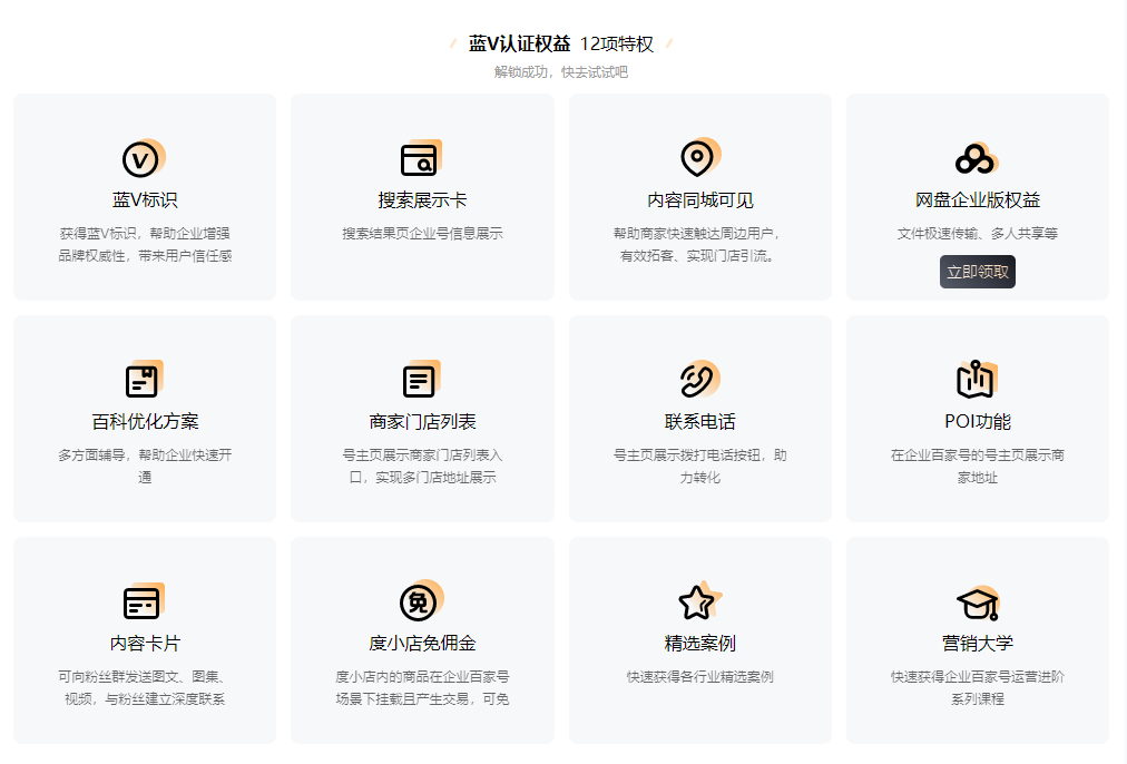 百度企業百家號官方藍v認證邀請碼一定要正確填寫,升級認證后的所有賬號問題都有專業運營老師來負責對接處理,賬號主頁的豪華裝修配置(各種轉化組件),同時可以給出目前賬號最適合的運營發展方向,存在哪些問題,需要如何改進,幫助您更好的利用藍v認證的權益和功能,有效提高推廣轉化效果。